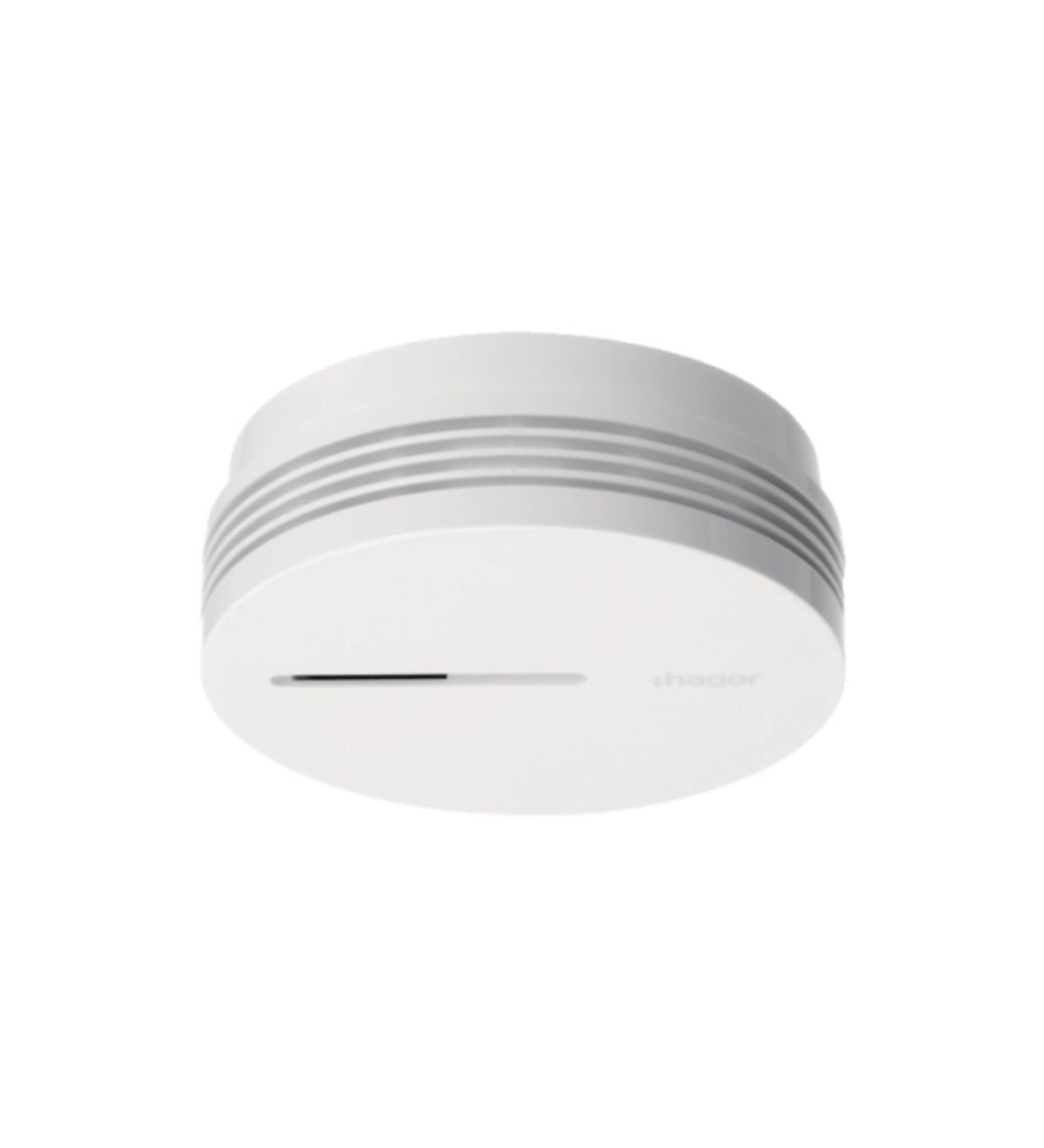 Ce détecteur intelligent est interconnectable en radio avec d’autres détecteurs Hager. Si l’un se déclenche, tous sonnent. Intégré à Coviva, il peut déclencher des scénarios d’urgence : allumer les lumières, ouvrir les volets, etc.