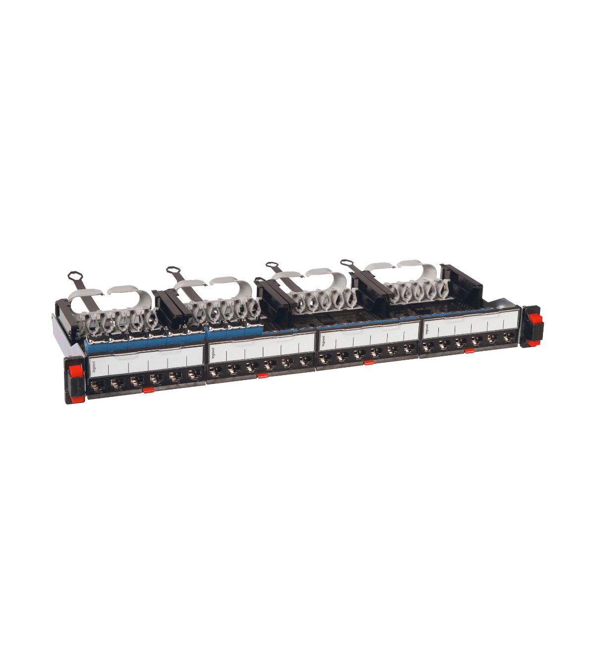 Le panneau de brassage LCS³ de Legrand garantit une performance optimale pour les réseaux Gigabit. Il est équipé d’un guide-câbles arrière pour maintenir les câbles et d’un repérage simple de chaque port.